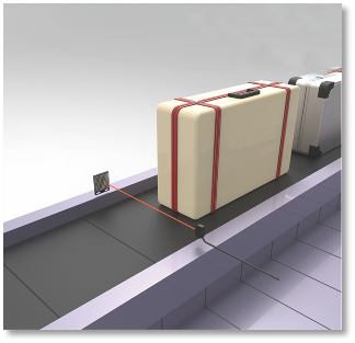 传送带上的行李通过检测